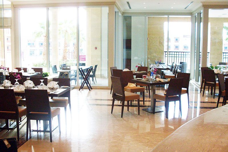 Von der großzügig gestalteten Lobby aus bietet sich dem Gast des Hauses ein atemberaubender Blick auf das Tote Meer und den größten, 5500 m3 Wasser umfassenden, Swimmingpool aller hier befindlichen Hotels. Des Weiteren bietet das Hotel einen beheizbaren Pool am Strand, wo sich auch ein Kinderbecken befindet. Zum Service des Hauses gehören u.a. mehrsprachiges Personal, Portier, Concierge, Geldwechsel, Autovermietung, postalische Dienstleistungen nebst Computer / Fax, Live-Entertainment, Babysitter-Service, Freizeitgestaltung für Kinder.